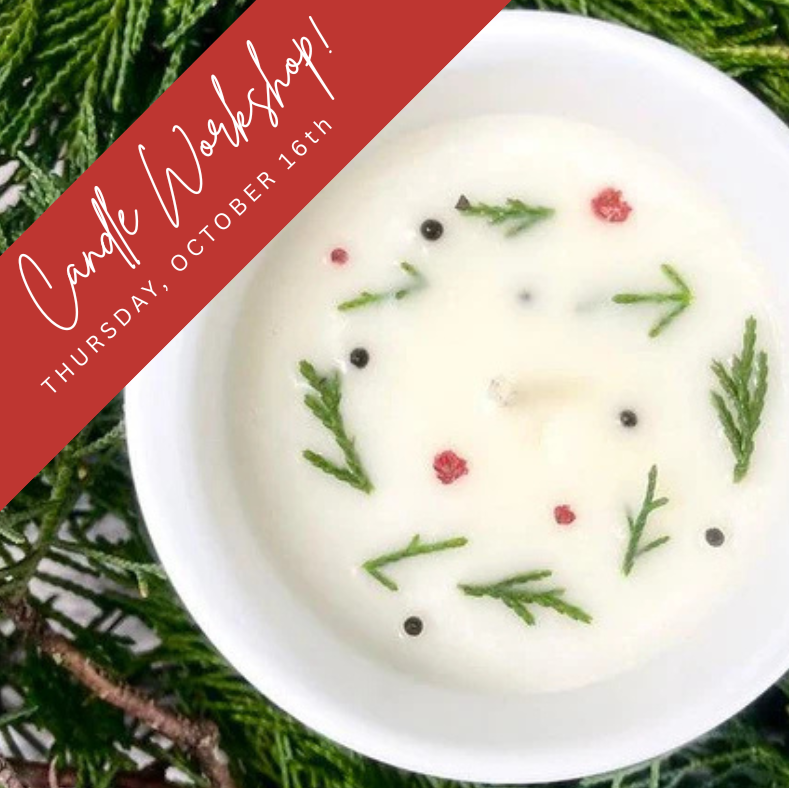 Enjoy refreshments and light snacks while you pour your own fall or winter candle (or both). Seating is limited, so don’t wait!